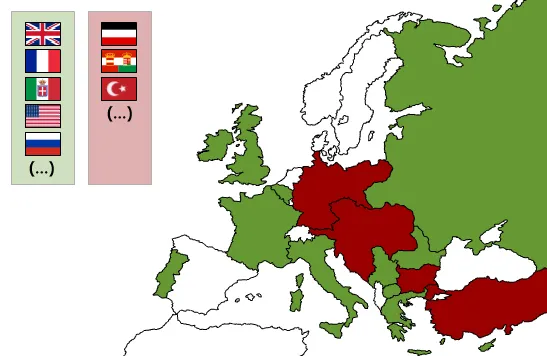 - Gli Imperi Centrali: l’Impero Tedesco, l’Impero Austro-Ungarico, il Regno di Bulgaria, l’Impero Ottomano;