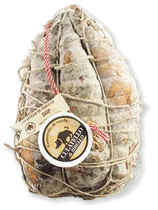Frutto della lavorazione delle parti più pregiate della coscia del maiale, il Culatello ha una tipica forma ‘a pera’, il cui peso può variare dai tre ai cinque chili. La sua carne è di colore rossastro, contornata dal bianco del grasso.
