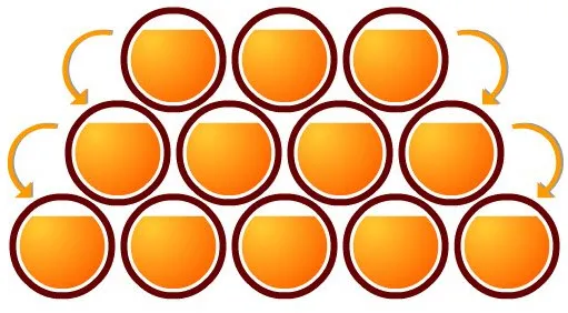 - The oldest wine, ready to be bottled, is in the lowest row;